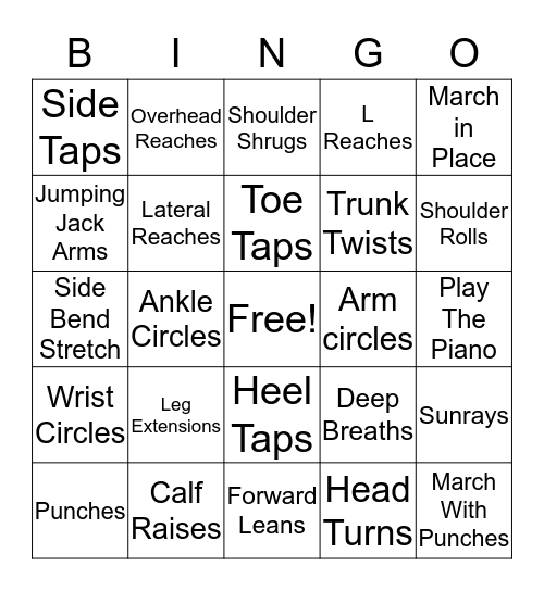 Bingo with a physical twist (no pun intended!) A Seated Bingo Fitness session will allow residents to enjoy the excitement of Bingo while incorporating gentle exercises to keep their bodies moving and minds sharp.