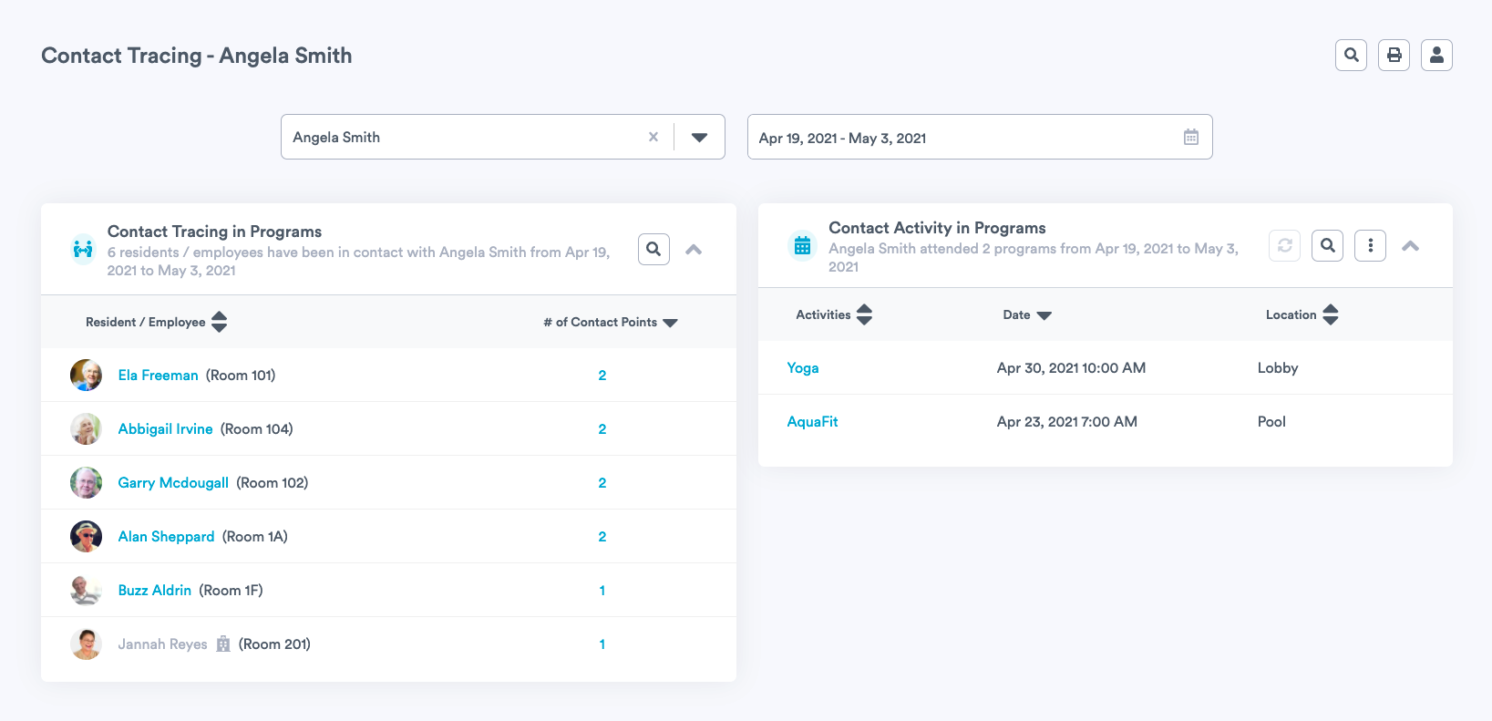 In just one click - literally - Welbi can show you everyone who came in contact with a specific individual, when and where. Because time is of the essence to eliminate spread in your community and keep everyone safe.