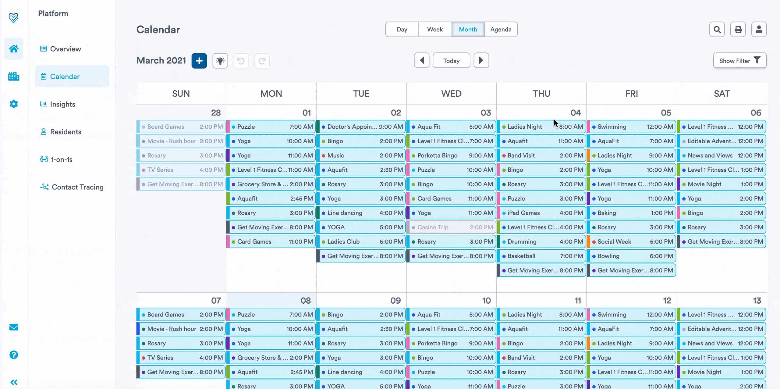 You can now filter your insights by level of care. These insights will allow heads of recreation to track the progress or performance of each level of care. More importantly, you can better personalize your programming to fit the needs and preferences of each group of residents in your community.