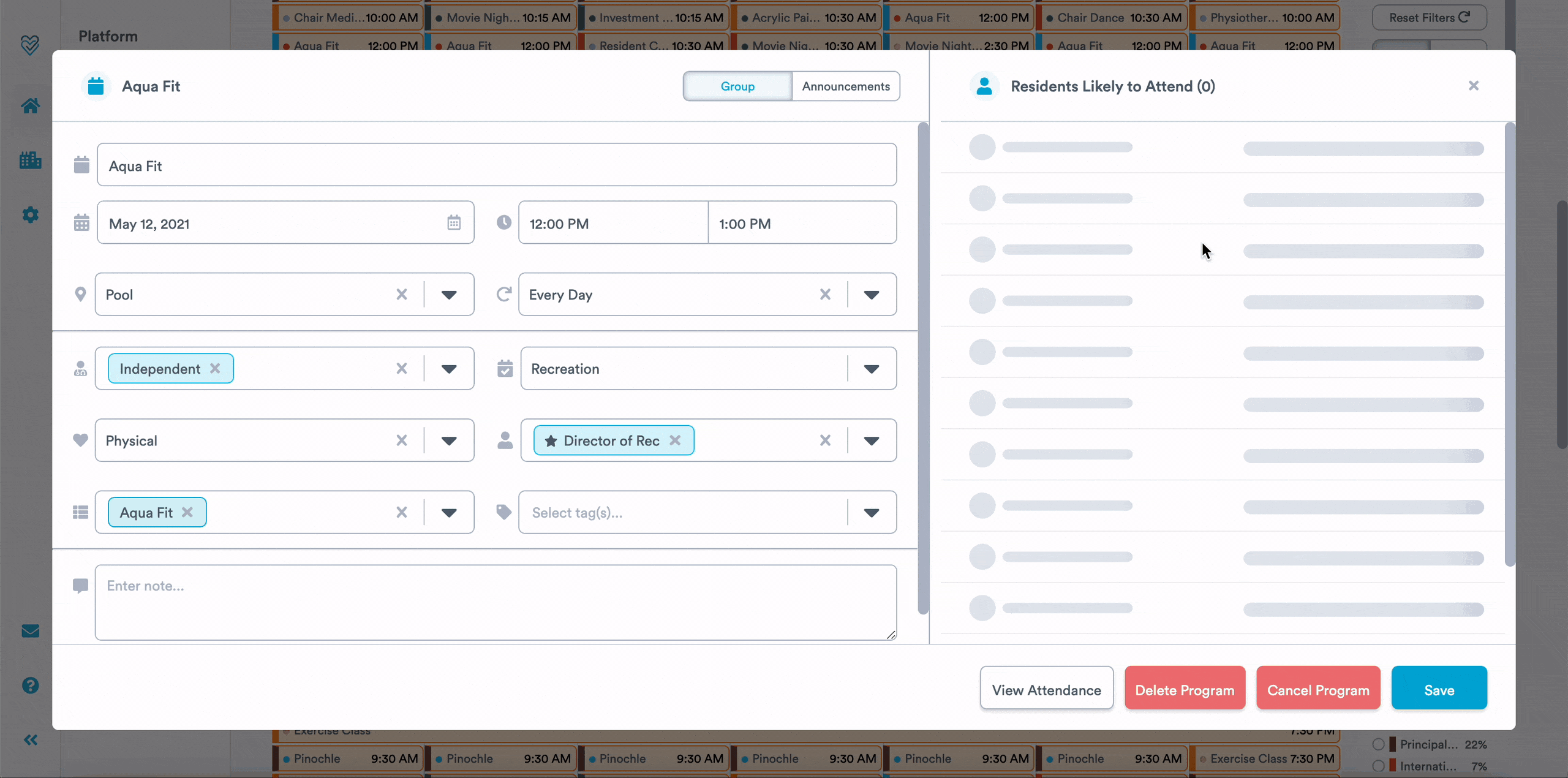 Previously, Welbi's Recommendation Engine lived in a section of the program window called "Audience". This section has been re-named to "Residents Likely to Attend", to more accurately describe what this feature really does.