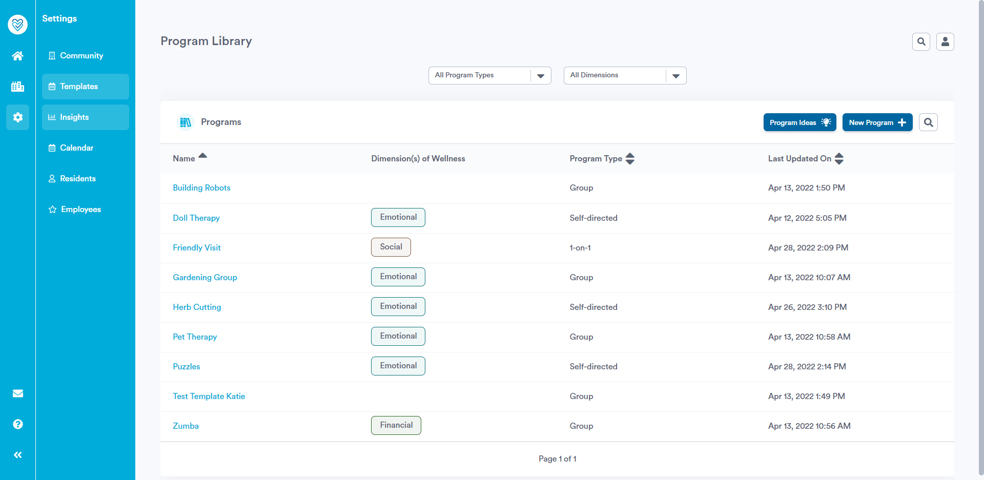 You now have the option to filter your Template library by Program Type and Dimension of Wellness, to find the programs you're looking for more easily.