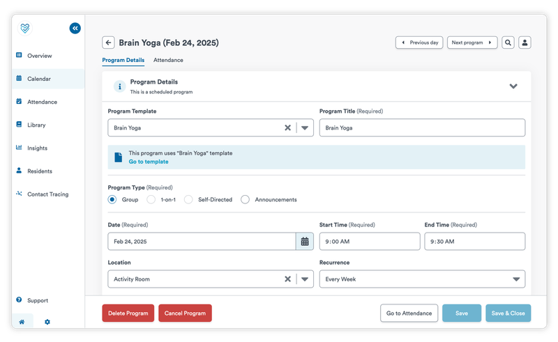 Provide a robust library of corporate-approved signature programs designed to serve a diverse resident population. Staff can implement ready-to-use templates, and easily customize them to reflect each community’s unique culture, care needs, and preferences.
