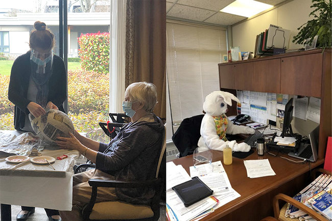Another way that the residents at Crofton Manor give back to their community is through intergenerational activities. Jennifer recalls the intergenerational Easter event she held this year, which she considers to be one of her best programs. The community invited preschoolers to join in on a socially distanced Easter egg hunt. The residents had their own egg hunt and made egg-shaped piñatas. They even had a visit from the Easter Bunny, who got some work done at Jennifer’s desk that day.